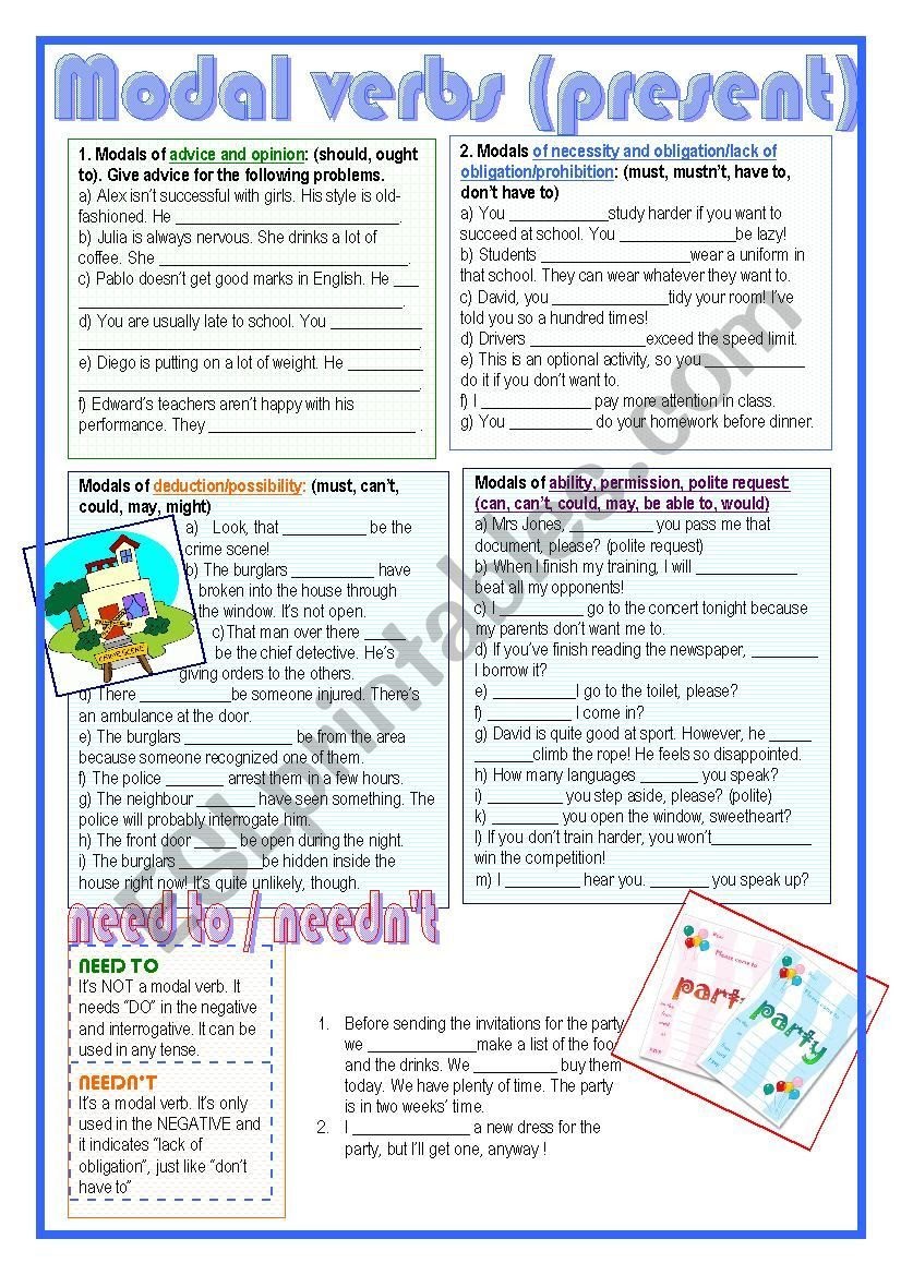 modal verbs (present) - ESL worksheet by Nuria08 in 2020 ... from i.pinimg.com Check spelling or type a new query. Maybe you would like to learn more about one of these? We did not find results for:
